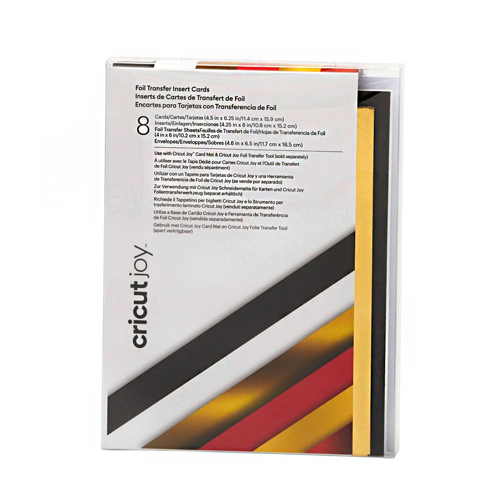 Add a little shimmer to your insert card creations in minutes with Foil Transfer Insert Cards for your Cricut Joy™ cutting machine. The ingenious glue-free design allows for two-tone, depth-filled cards without mess or hassle. Pair with your Cricut Joy Foil Transfer Tool and included Foil Transfer Sheets to make your card designs shine. These cards include white envelopes and come in a bounty of colors to please every card recipient on your list! For use with Cricut Joy. Requires Cricut Joy Foil Transfer Tool and Cricut Joy Card Mat (sold separately).