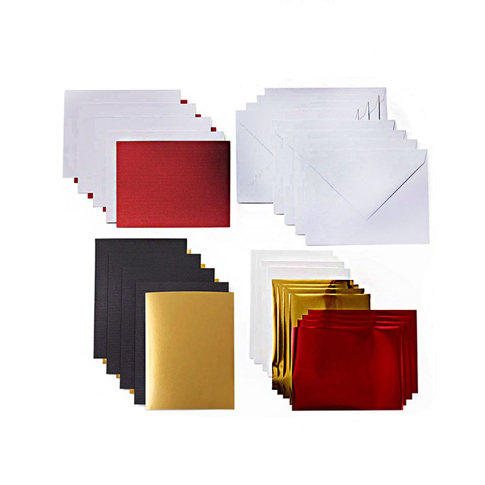 8 A6 cards (4 Black, 4 White); 8 inserts (4 Gold Metallic, 4 Burnt Red); 8 Foil Transfer Sheets (4 Gold, 4 Red); 8 White envelopes