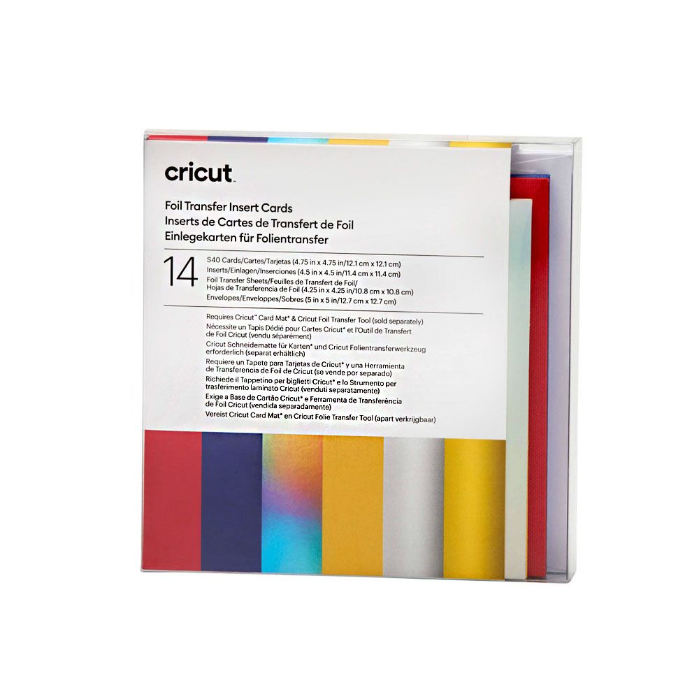Add a little shimmer with Foil Transfer Insert Cards for your Cricut® cutting machine. The ingenious glue-free design allows for two-tone, depth-filled cards without mess or hassle. Use your Cricut Foil Transfer Tool and included Foil Transfer Sheets to make your card designs shine. These cards come in a variety of sizes, include corresponding white envelops, and are available in a bounty of colorways. Requires Cricut Foil Transfer Tool and compatible Cricut Card Mat (sold separately).