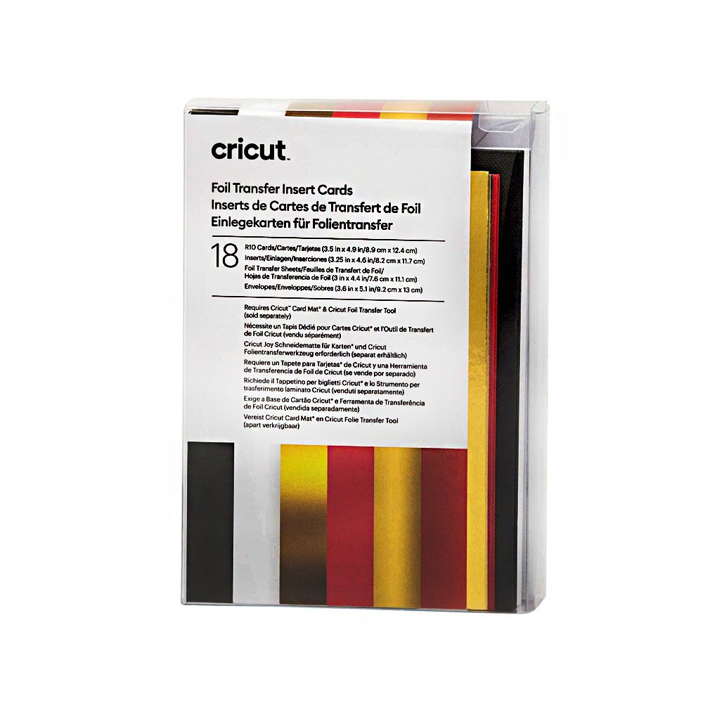 Add a little shimmer with Foil Transfer Insert Cards for your Cricut® cutting machine. The ingenious glue-free design allows for two-tone, depth-filled cards without mess or hassle. Use your Cricut Foil Transfer Tool and included Foil Transfer Sheets to make your card designs shine. These cards come in a variety of sizes, include corresponding white envelops, and are available in a bounty of colorways. Requires Cricut Foil Transfer Tool and compatible Cricut Card Mat (sold separately).