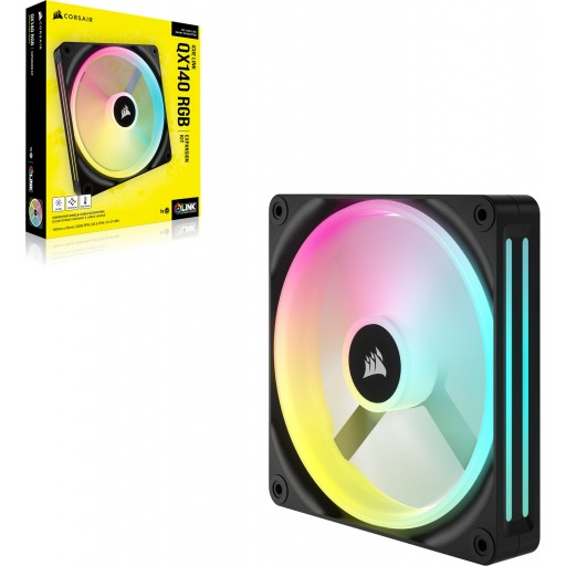 Add a CORSAIR iCUE LINK QX140 RGB 140mm PWM Fan Expansion Kit to your system for even more lighting with four distinct light zones. Requires an iCUE LINK System Hub and cables.