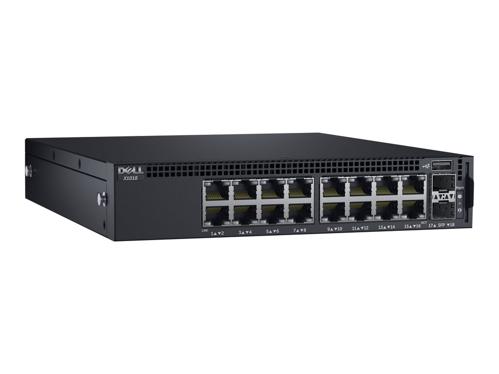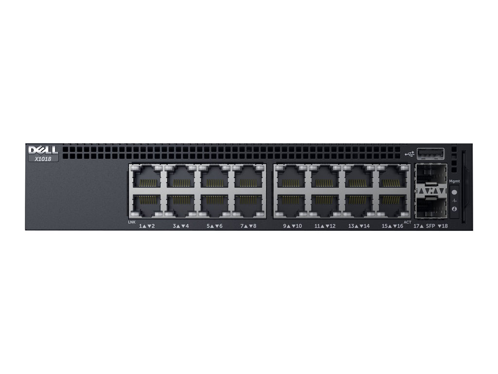 Dell Networking X1018 Smart Web Managed Switch/ 16x 1GbE and 2x 1GbE SFP ports Lifetime Limited Hardware Warranty - Minimum Warranty - ( add 575-BBEE to make the switch rackmountable )