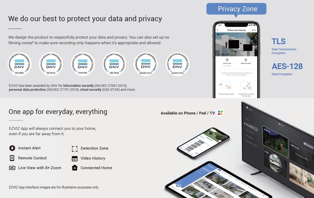 - Supports MicroSD Card (Up to 512 GB) & EZVIZ CloudPlay Storage