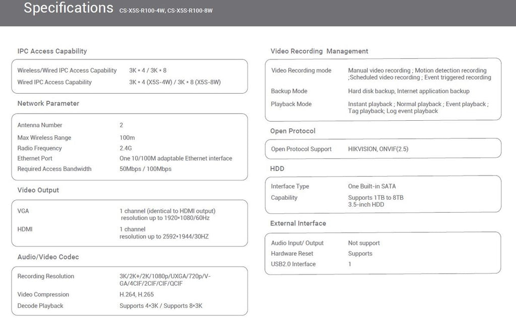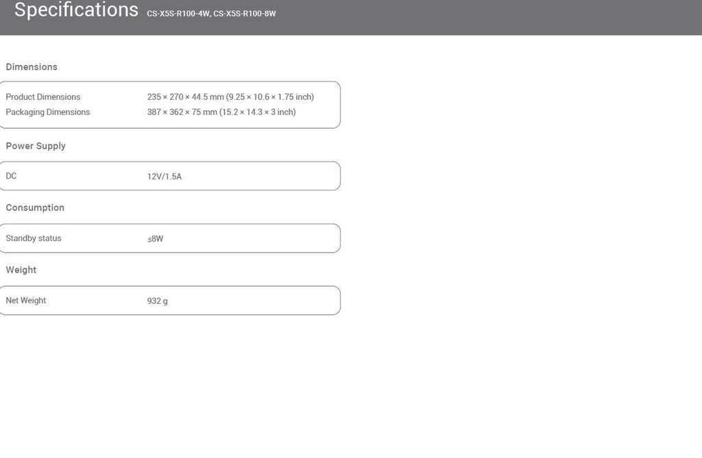 Model: CS-X5S-R100-4W, CS-X5S-R100-8W