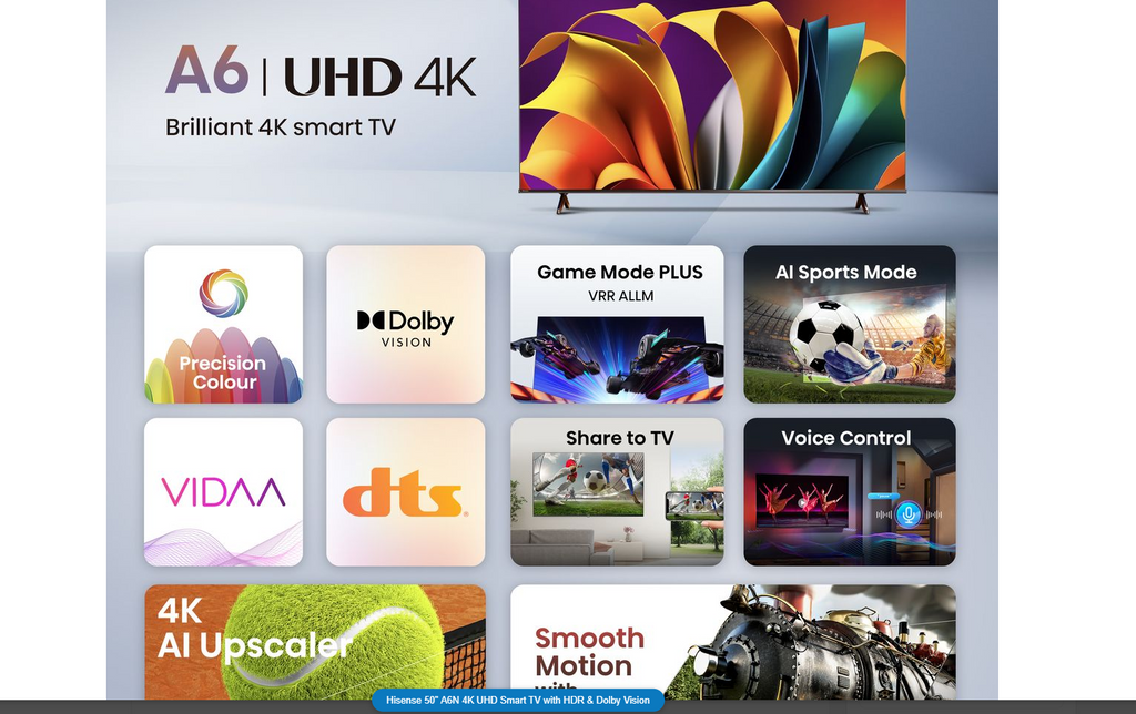 - AI 4K Upscaler - Hisense's Al 4K Upscaler unlocks superior clarity for all your favorite content. This smart feature reshapes not only your cherished classics and home movies, but also modern TV broadcasts, movies, and even streaming content into stunning 4K quality. Every pixel is elevated to the power of your TV.