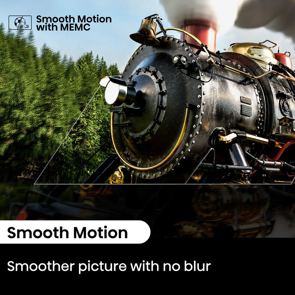 - AI Smooth Motion - Experience smooth, lifelike visuals with advanced features like MEMC (Motion Estimation, Motion Compensation) and 3D Noise Reduction, built into a highly responsive panel. With AI Smooth Motion technology, annoying motion blur lies in the past. Whether it's fast-paced sports or action-packed gaming, every movement and sudden twist is rendered with crisp clarity, ensuring dynamic scenes appear seamless and true to life.