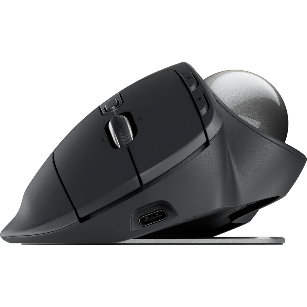 MX Ergo S, Logitech’s most advanced wireless ergonomic trackball yet, with a 20-degree tilt angle and 6 customizable buttons - now with quiet clicks and quick USB-C charging (cable not included).